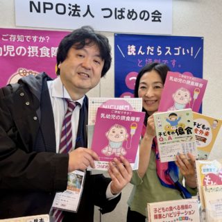 九州大学大学院の藤塚真希様です。乳幼児の摂食の問題について熱心に取り組まれており、つばめの会のブースや勉強会で多くの情報交換をさせていただいています。ありがとうございます。